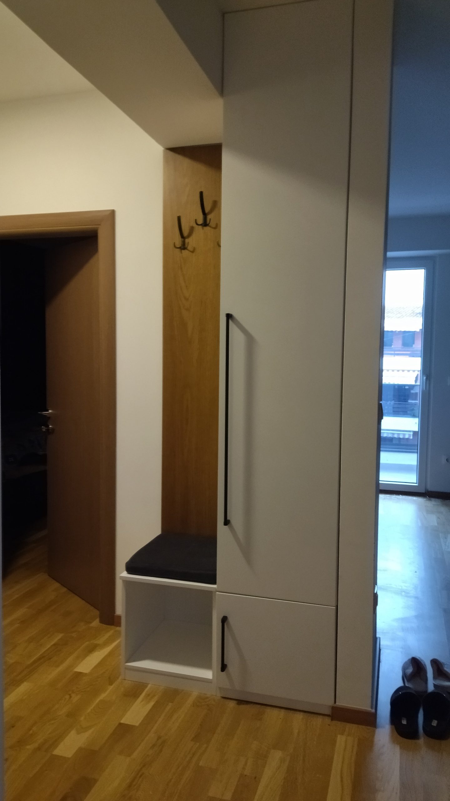 - We make the elements in the hallway from veneered MDF, high-quality chipboard from the Egger brand or painted MDF by your choice.